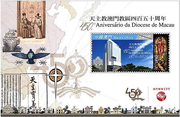 On 23 Jan 2026, Macau Post issued a set of stamps celebrating the 450th anniversary of the Catholic Diocese of Macau. At the lower right of the margin we can see Guia Lighthouse.